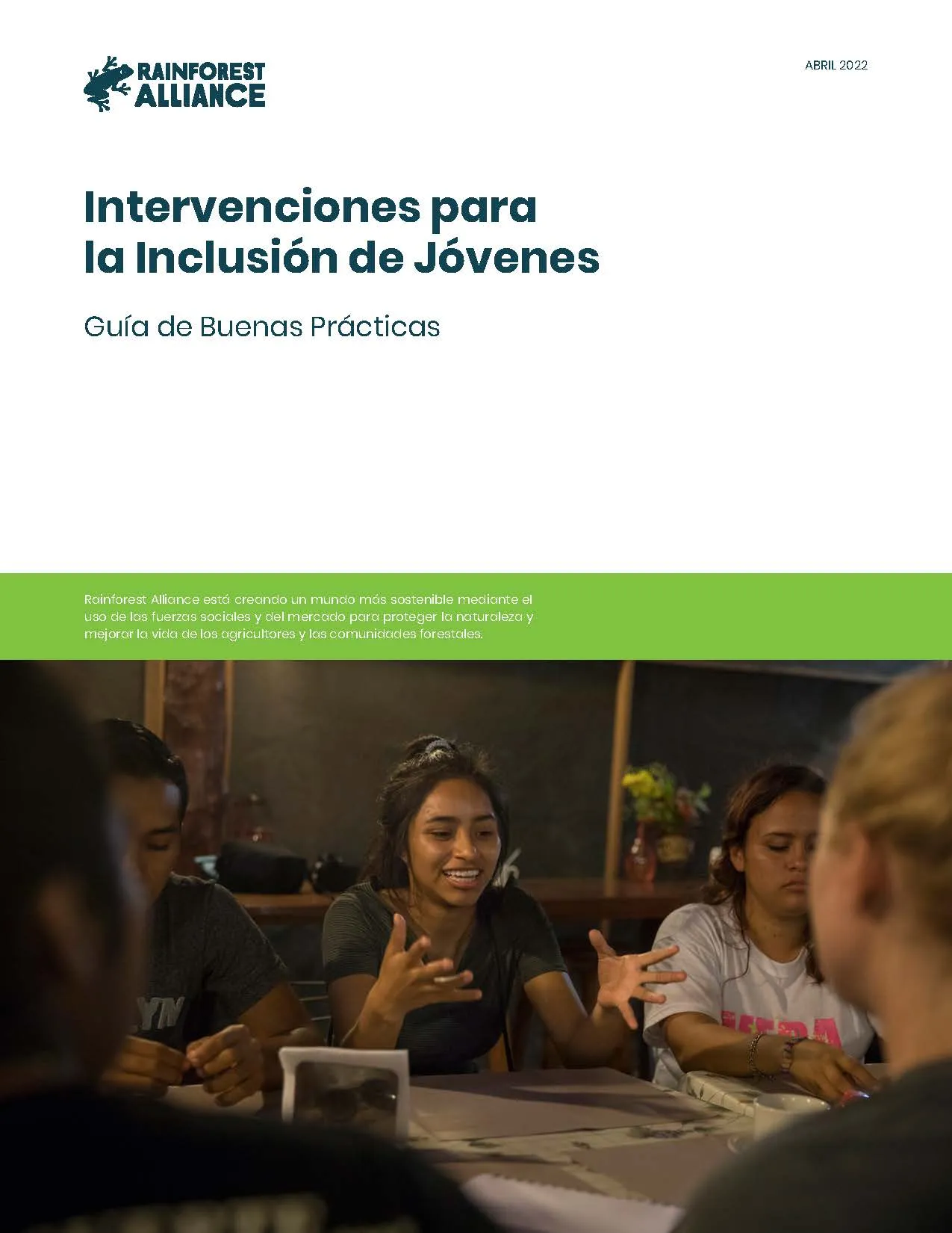 Esta guía tiene como objetivo brindar una descripción gen­eral de las mejores prácticas para la inclusión y participación de jóvenes en la agricultura y la silvicultura sostenible. Proporciona un contexto respecto a las tenden­cias globales y regionales de empleo juvenil y describe las principales barreras para la inclusión de la juventud. Intervenciones claves incluyen la formación y capacitación, la sensibilización, las oportunidades de apren­dizaje experiencial, el fomento del diálogo intergeneracional y la tutoría, entre otros. Esta guía concluye con una orient­ación relativa al monitoreo y la evaluación de las interven­ciones de inclusión juvenil, con ejemplos de posibles indica­dores y consideraciones presupuestarias. De igual manera se encuentran incluidos enlaces a recursos con información adicional a lo largo de toda la guía.