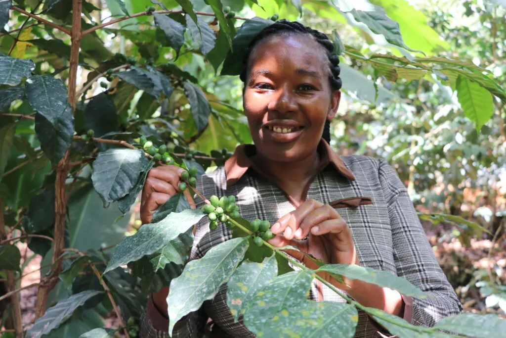 Christine Karimi is a smallholder coffee farmer in Kathakwa village in Embu County. She is 47 years old, has two children, and farms on less than two acres of land. In 2013, she faced the devastating loss of her husband, leaving her to raise her children and earn a living on her own. Determined to provide a good life for her family, Christine dove into the world of coffee farming in 2017.