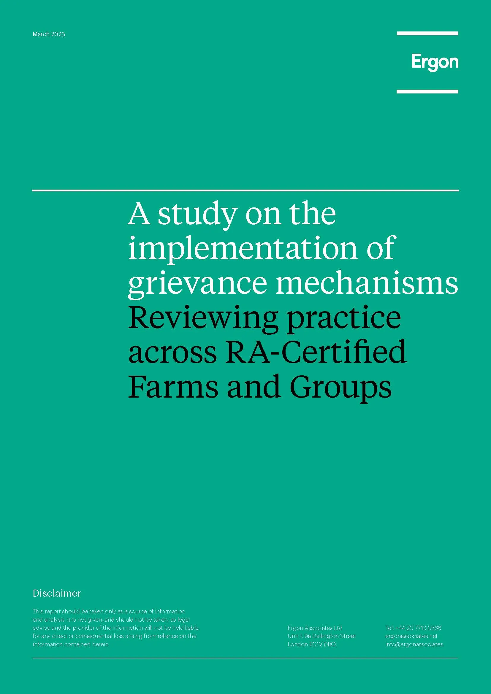 A Study on the Implementation of Grievance Mechanisms: Reviewing Practice across Rainforest Alliance Certified Farms and Groups