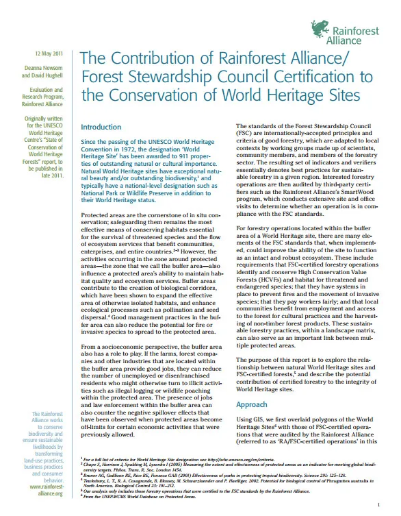 The Contribution of Rainforest Alliance/Forest Stewardship Council® Certification to the Conservation of World Heritage Sites