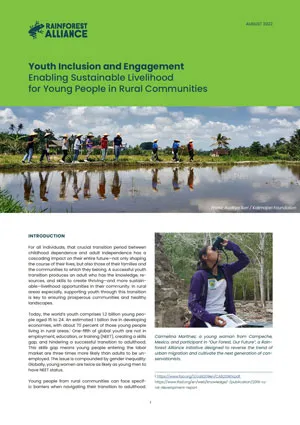 Together with their communities, businesses, and educators, we aim to improve youth employment opportunities and support rural communities’ sustainable development. To achieve this, the Rainforest Alliance conducts holistic interventions tackling barriers to youth inclusion and engagement. This means taking collaborative measures with producers, NGOs, companies, and governments to enable the full participation of young people in rural production, markets, and decision-making.