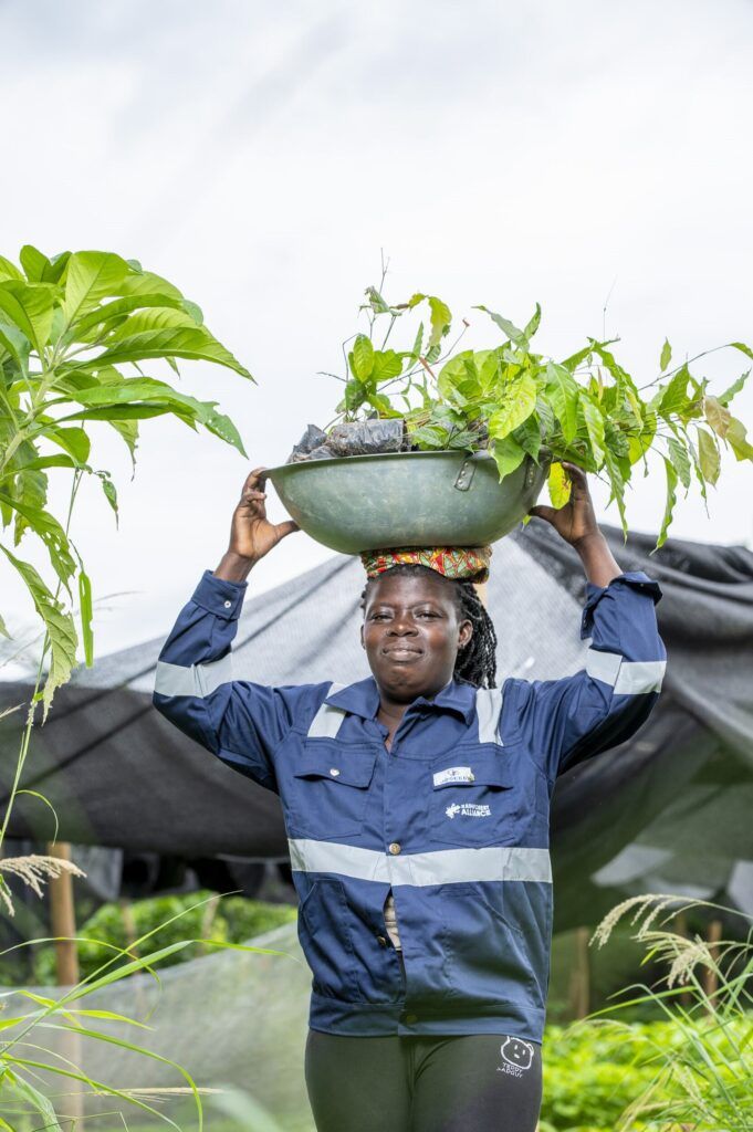 - Planting tree seedlings on cocoa farms, along riverbanks, and in formerly degraded areas.