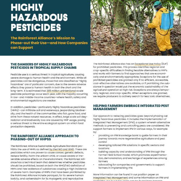 Every year, JDE Peet’s gets closer to achieving its sustainability goals, thanks in part to its partnership with the Rainforest Alliance. We built this partnership through years of collaboration, trust and a common goal to improve the livelihoods of coffee and tea farmers. With our mutual commitment to continuous improvement, the Rainforest Alliance helps JDE Peet’s identify areas that need attention, evaluate pathways forward, and ultimately leads the company closer to achieving its responsible sourcing goals. Interested in learning more? Contact us at tailoredservices@ra.org.