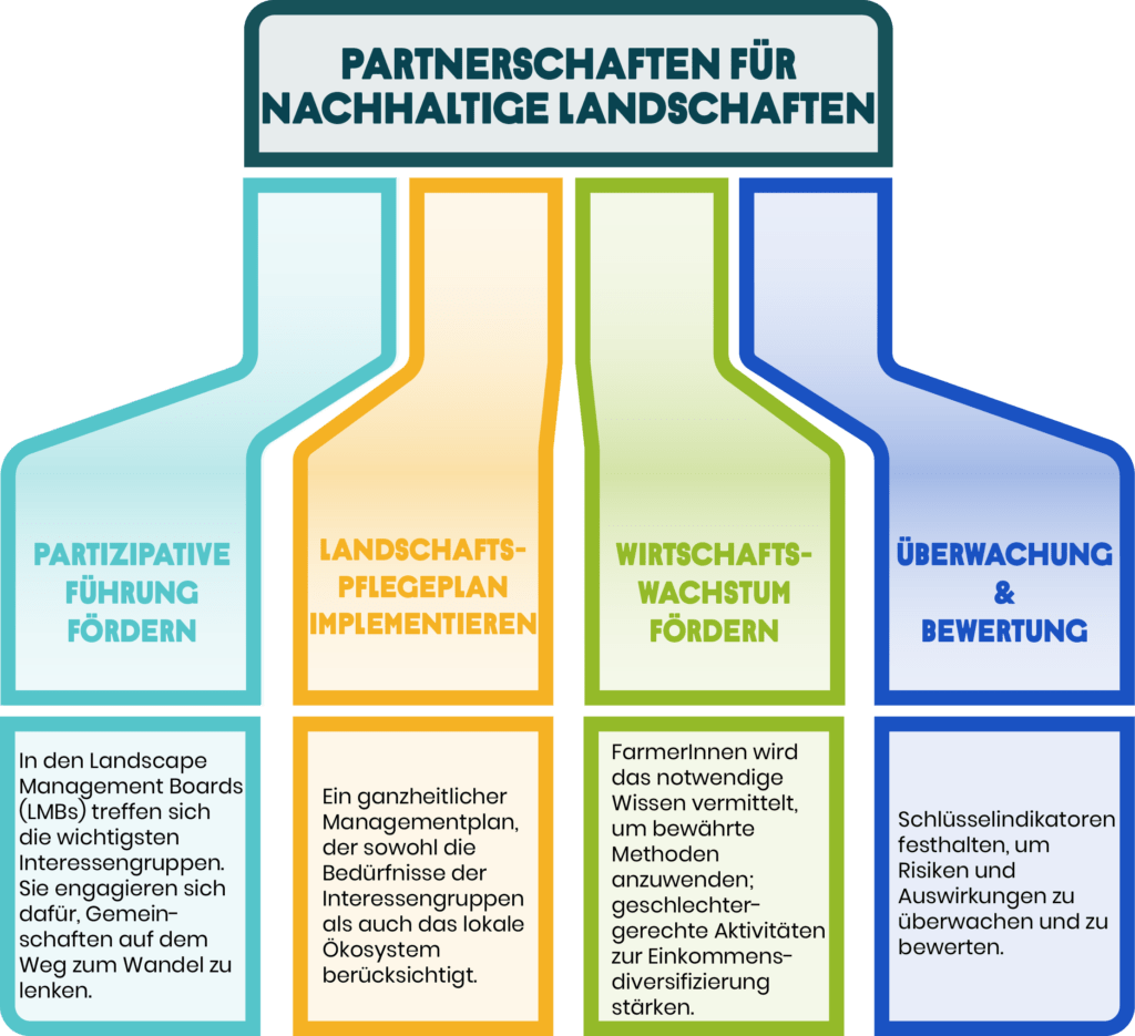 - Lokale Partnerschaften mit FarmerInnen, ländlichen Gemeinschaften, Regierungsvertretern, der Zivilgesellschaft und Wissenschaftlern auf der ganzen Welt