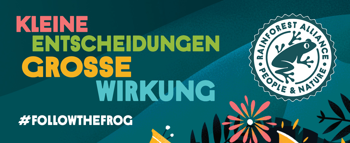 Das Rainforest Alliance-Zertifizierungssiegel bedeutet, dass das Produkt (oder ein bestimmter Inhaltsstoff) von land- und forstwirtschaftlichen ErzeugerInnen und/oder Unternehmen hergestellt wurde, die zusammenarbeiten, um eine Welt zu schaffen, in der Mensch und Natur gemeinsam wachsen.