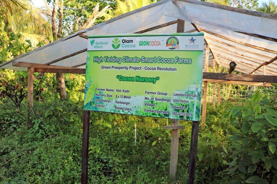 Pak ist einer von 8.000 Kakaofarmern in Sulawesi, die vom Rainforest-Alliance-Projekt profitieren. Ziel des Projekts ist es, den Anbau der Farmer an das sich verändernde Klima anzupassen und die Entwicklung der ländlichen Wirtschaft zu fördern. Umgesetzt wird das Projekt mit Unterstützung der Partner Millennium Challenge Account Indonesia (MCA-Indonesia), P.T. Olam Indonesia und GrowCocoa.