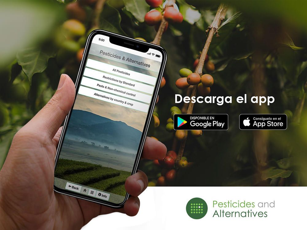 Puede descargar la aplicación gratuita “Pesticides and Alternatives” de la tienda de aplicaciones iTunes en español, inglés o portugués. Una vez descargada, puede ejecutarse sin conexión para que los agricultores puedan acceder a ella desde cualquier lugar.