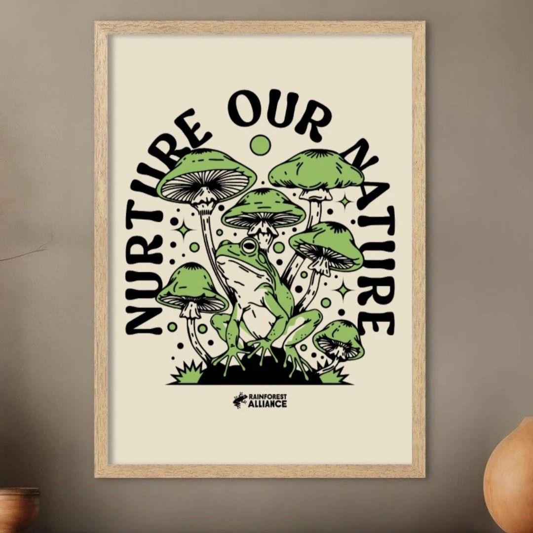 Apoye a los agricultores que trabajan en armonía con la naturaleza. Sólo siga a la rana para hacer mejores elecciones en la abarrotería.