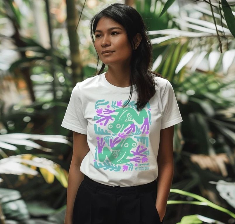 Si le gustan los bosque lluviosos tanto como a nosotros, ¿por qué no demostrarlo con una elegante camiseta—o una bolsa de mano o un paño de cocina? Una compra en nuestra tienda de productos ayudará a proteger las selvas tropicales y toda la vida mágica que hay dentro de ellas.