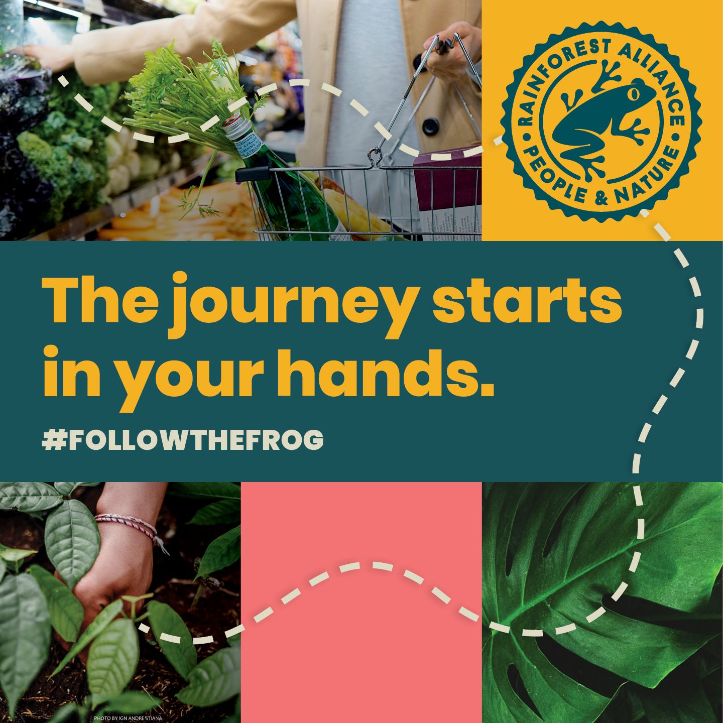 El sello de certificación Rainforest Alliance significa que el producto (o un ingrediente específico) fue producido por agricultores, silvicultores y/o empresas que trabajan juntas para crear un mundo donde las personas y la naturaleza prosperen en armonía.