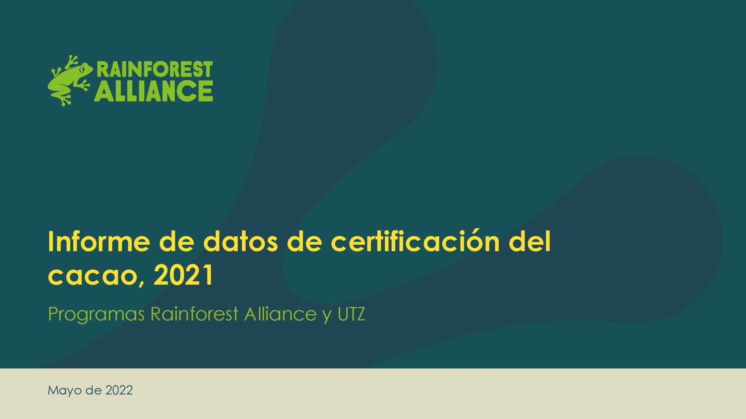 El objetivo principal de este informe es presentar el alcance y escala de los programas de certificación del cacao del año calendario 2021 de Rainforest Alliance y UTZ.