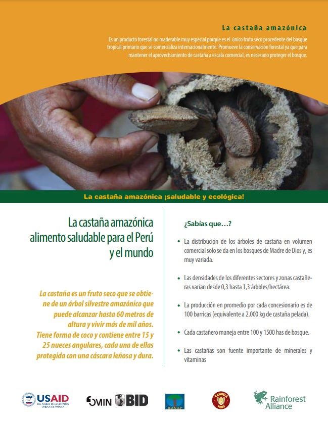 La castaña amazónica representa una parte importante de la economía de Madre de Dios, Perú, pues más del 65% del total de los ingresos anuales que perciben las familias castañeras en esta región proviene de esta actividad.