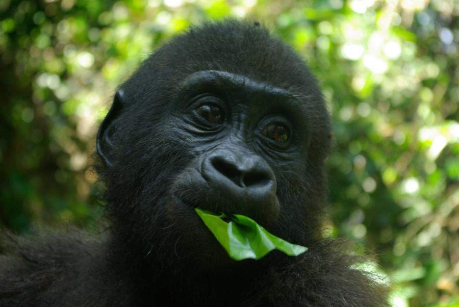 Mountain gorillas are the largest living primates on earth! Along with chimpanzees, orangutan, and bonobos, they are the closest living relatives of humans, with mountain gorillas having the most developed brain of the four. They live primarily on the lush mountain sides of national parks in Rwanda, Uganda, and the Democratic Republic of Congo in Central Africa. Mountain gorillas live in groups of roughly 30 members, with one dominant, male troop leader called a ‘silverback’ for the silver color in his coat.