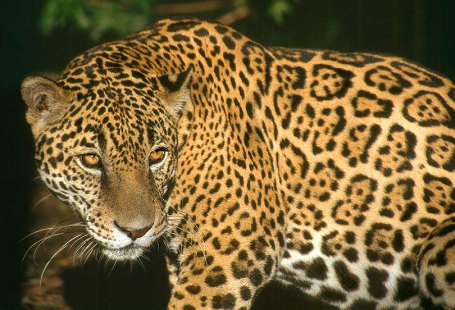 Jaguars are famous for their beautiful spotted coats, which help them hide amongst the grasses, bushes, and trees where they live. The rare, all-black (melanistic) jaguar is what we commonly refer to as a black panther. Jaguars are known to eat more than 85 species of prey, including armadillos, peccaries, capybara, tapir, deer, squirrels, and birds and can even snatch fish, turtles and young caiman from the water.
