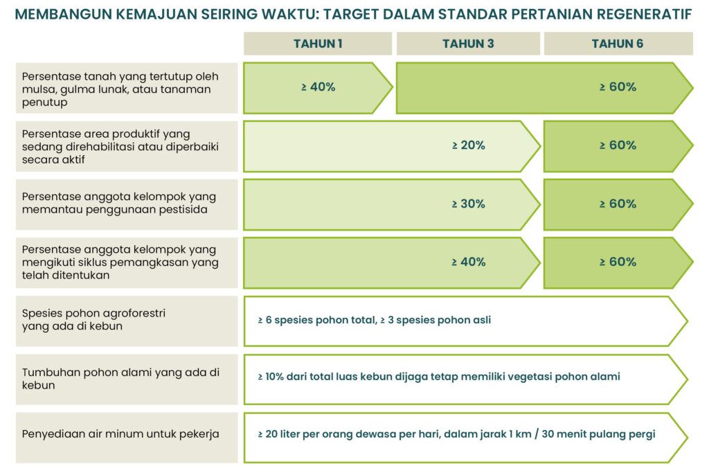 Bagi perusahaan, standar ini memberikan panduan praktis dan data point yang dapat dimanfaatkan untuk mencapai tujuan regeneratif—seperti Tujuan Pembangunan Berkelanjutan (SDGs) atau target bebas emisi karbon—serta menilai risiko dalam rantai pasok. Bagi petani, kerangka ini menjadi alat untuk memahami praktik apa yang sudah berhasil dan aspek apa yang masih perlu ditingkatkan. Bagi kami, pendekatan ini memastikan bahwa “regeneratif” bukan sekadar label, melainkan sebuah kemajuan nyata yang dapat diukur.