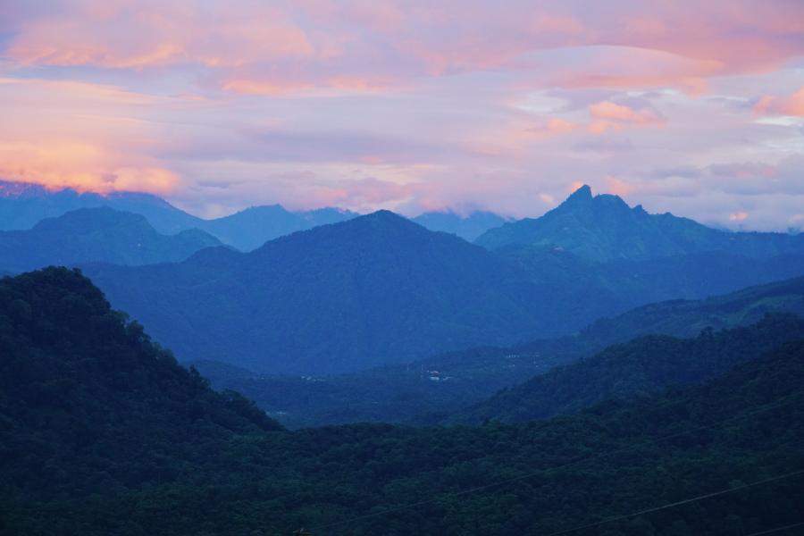 The sun rises over Finca El Platanillo, which is nestled in the Sierra Madre de Chiapas Mountains.