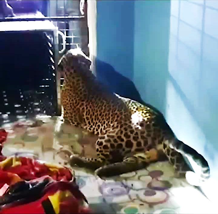 This training came in handy last year when a leopard chased a dog across the roofs of worker housing. While the dog ran away, the much-heavier leopard fell into a home. Thanks to the training, however, the family who lived there responded perfectly, locking the big cat safely inside until the wildlife department could rescue it and release it back into the wild.