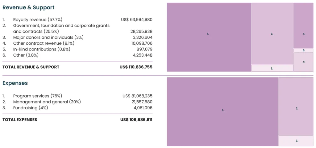 We finance our work and sustainability programs through diverse sources of income. The largest sources are participation royalties from certification, grants from governments and foundations, and individual donations.