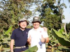 あとがき:イチオシの最高峰バナナと、レインフォレスト・アライアンスのマスコット、アカメアマガエルのマスコットを手に写真を撮らせていただきました。