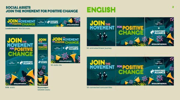 An overview of all ready-to-use and customizable digital assets (available in EN, DE, ES, FR, PT, SE) for company communications about the new certification seal and Follow The Frog.