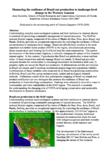Impact StudyMeasuring the Resilience of Brazil Nut Production to Landscape-Level Change in the Western Amazon Published on September 7, 2007Available in: English