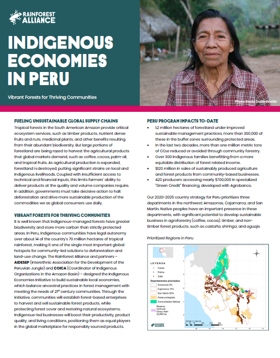 The Rainforest Alliance has a long history working alongside Indigenous Peoples, partnering with Indigenous organizations and communities in some of the world’s most ecologically and culturally significant landscapes, including the Amazon basin. Our teams of field professionals have built enduring relationships and co-design sustainable development programs that center Indigenous Peoples as the foremost guardians of […]