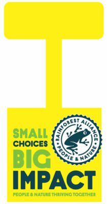 Decals of our green frog’s footprint to lead customers to your Rainforest Alliance certified products! Available in yellow, green, or beige in PDF format.